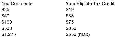 The big bonus is that donations of $25 or more are eligible for a tax credit of up to 75% of your donation.
